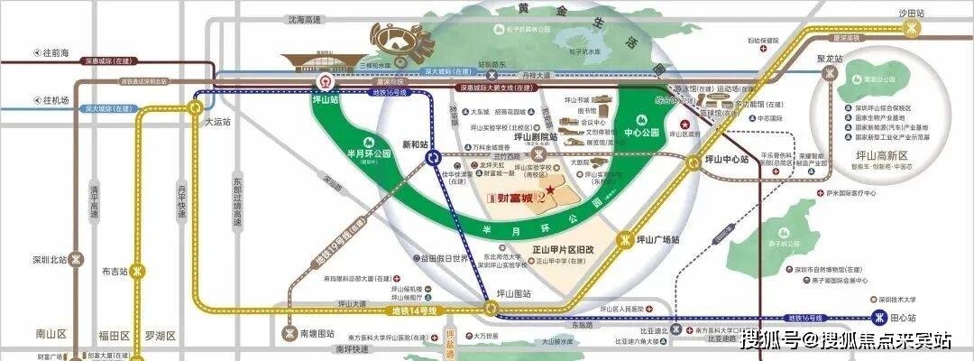 ·家门口三地铁环绕:14/16/19号线(在建),坪山广场站、新和站、坪山剧院站(在建)三站环绕,快线站直达岗厦北,便捷换乘畅达各区核心;
